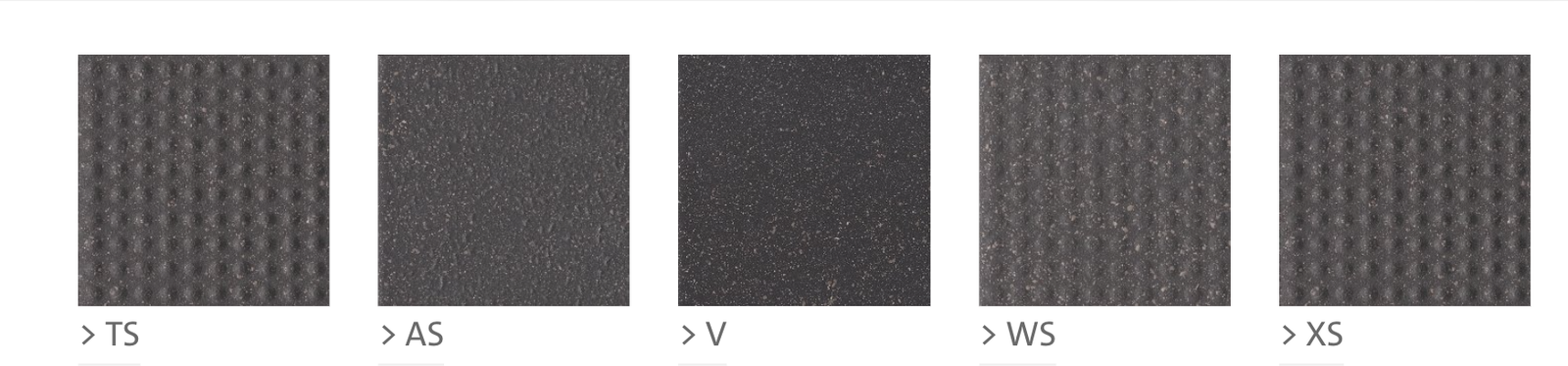 The anti-slip relief tiles in this collection – also referred to as “Globalgrip” – are ideal for use in heavily trafficked areas. The TS, WS, and XS relief tile are perfect for spaces like building lobbies, public restrooms, and commercial kitchens. The course, speckled AS relief tiles are suitable for rooms and applications in which greater anti-slip properties are required, such as showers and swimming pool surrounds.