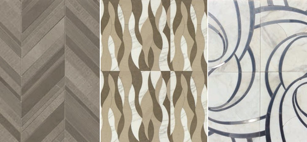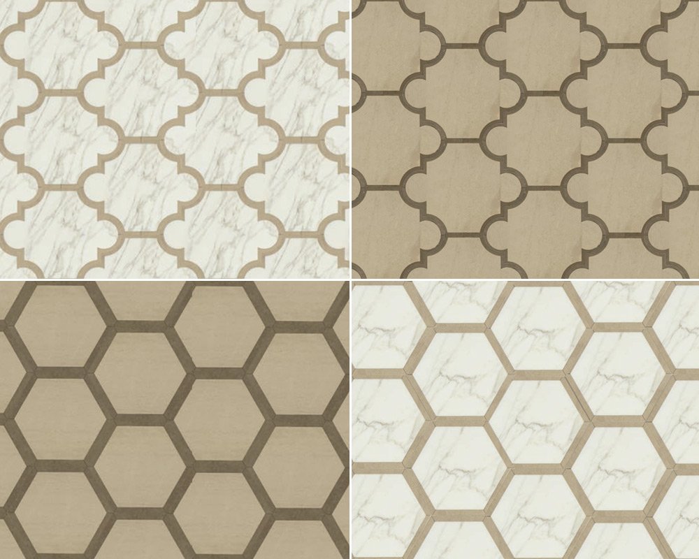 These two-tone tile patterns for walls or floors pair complementary stone shade to create the effect Create a beautiful inlaid floor design with either of these elegant tile shapes. Scaled up to 12″, Suave Due Hexagon tiles are an opulent throwback to a classic format. Italian for key, Chiave (12 5/8″ x 15 3/4″) tiles look like a fairy-tale keyholes and wouldn’t be out of place in Cinderella’s castle.