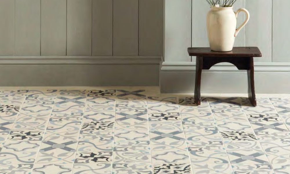 The inspirations for Odyssey Grande floor tiles come from around the world, yet each pattern looks beautiful in modern and traditional settings. The base color for all Odyssey Grande patterned tiles is white. A matching solid white tile is available to complement any pattern in the series.