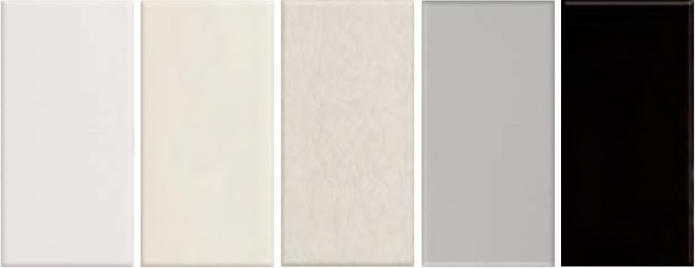 Timeless subway tiles in four coordinated neutral tones and one crackle finish