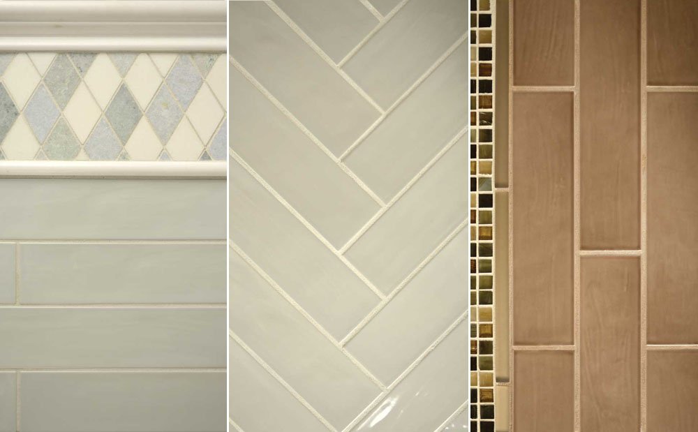 Sophisticated and simple tiles with a glossy finish catch pools of light throughout the day. Tongue in Chic is available in a single size with a matching border. Ten subdued colors fill out this versatile collection of glossy glaze brick tiles.