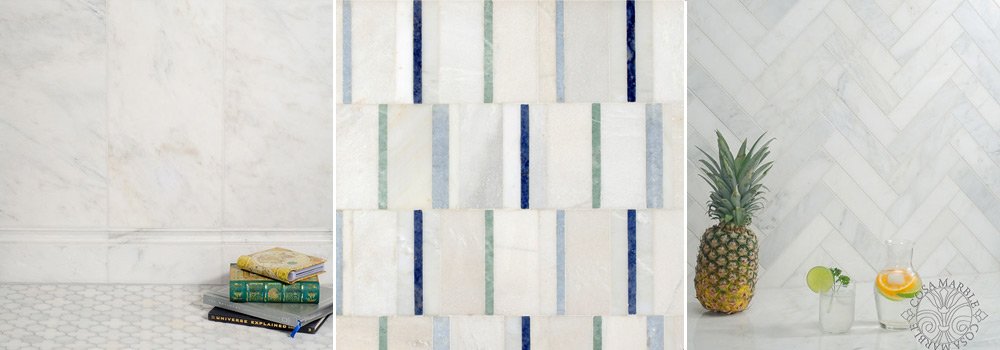 Cosa Marble Co. creates innovative decorative stones that make any project extraordinary. Introducing: Asian Statuary precision-cut white marble mosaic tiles.