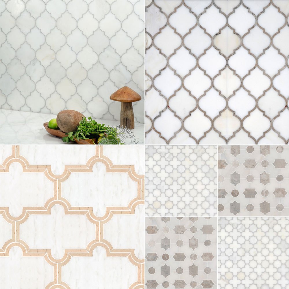 High-pressure jets of water can cut the tightest corners and slightest curves without cracking this opulent stone. This tile brings the look of classic luxury to walls and floors. Zara is a tessellating arabesque tile. Alhambra is an abstract geometric floral patterned mosaic. Zelij is Moroccan inspired tile pattern incorporating rectangles and circles. And La Scala is a brick-ish mosaic tile with a decorative border.